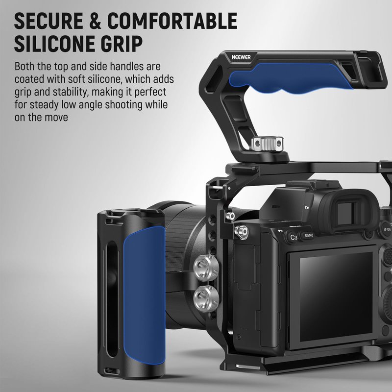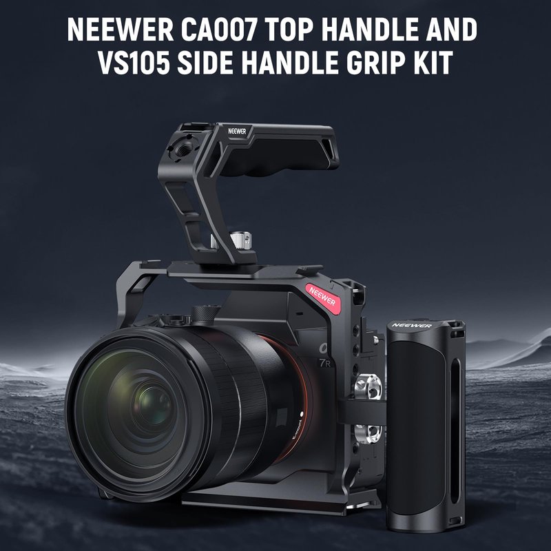 NEEWER Top Handle and Side Handle Grip Kit, 3/8" Screw with ARRI Locating Pins, 1/4" Screws, Cold Shoes, Ergonomic Silicone Handgrip, Compatible with SmallRig Camera Cage Video Rig, CA007+VS105