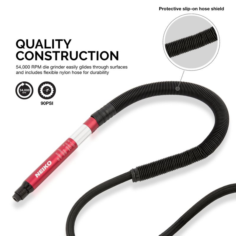 NEIKO 10649A Micro Air Die Grinder | 1/8" (3mm) Capacity | Pencil Type | 54,000 RPM | For Cleaning Dies, Rotors, Backing Plates, Brake Pads, Mounts, Etc.