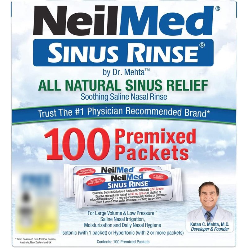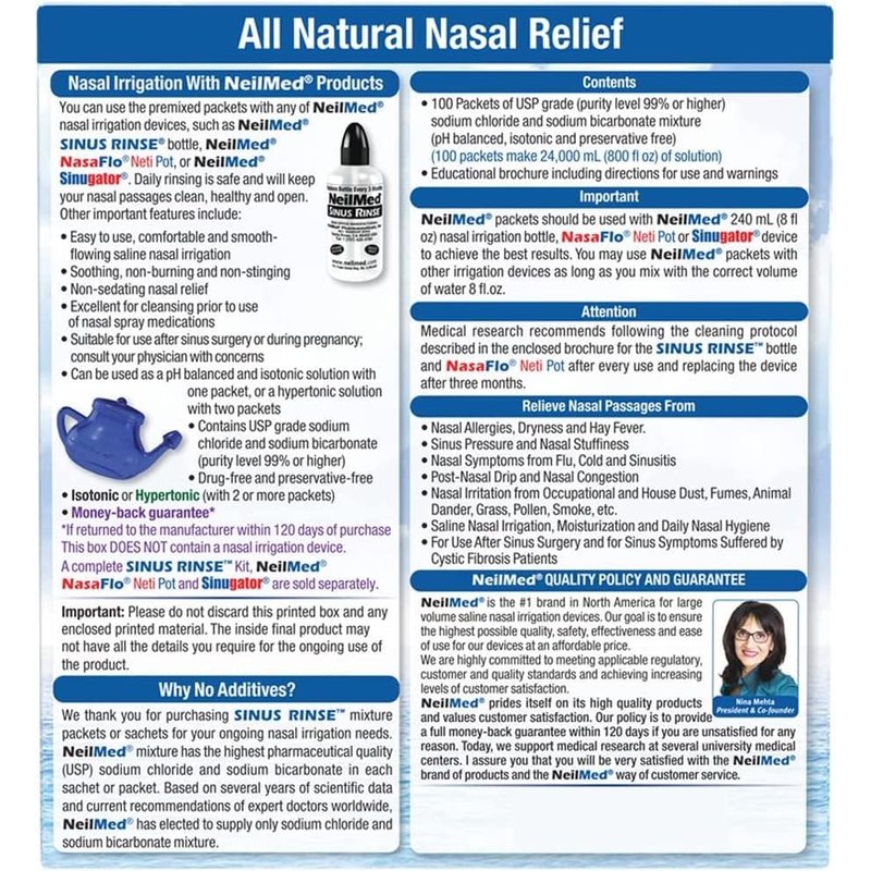 NeilMed Sinus Rinse All Natural Relief Premixed Refill Packets 100 Each