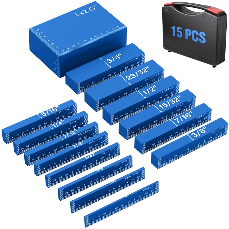 - Style: 15 pcs Setup Blocks Woodworking Blue