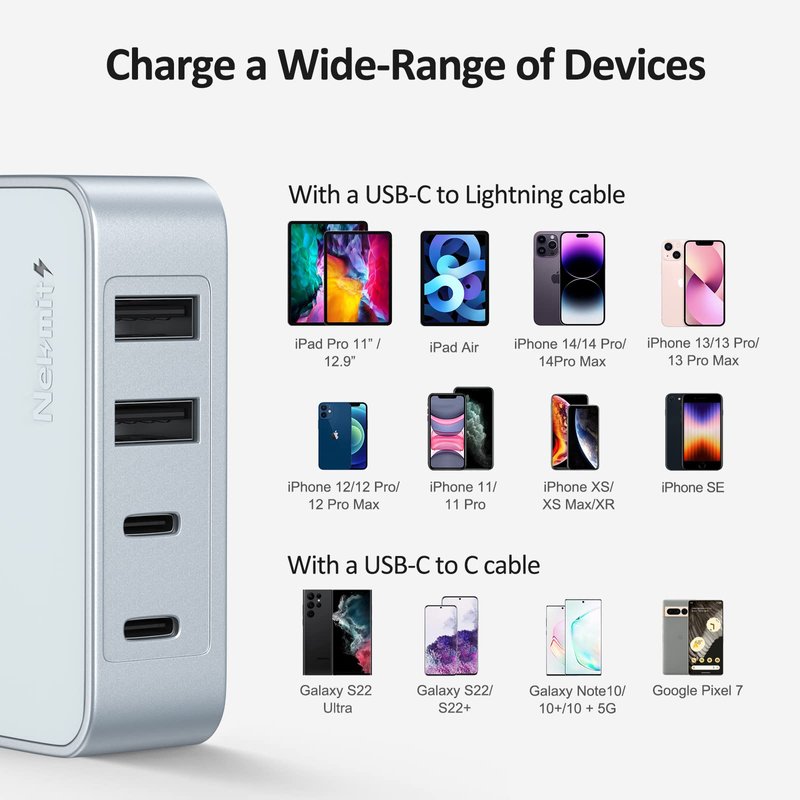Nekmit Charger auto-detects your device’s output to always charge at maximum speed. Built-in premium circuitry ensures the device safety, protect your devices from over-charging, over-heating and short circuit.