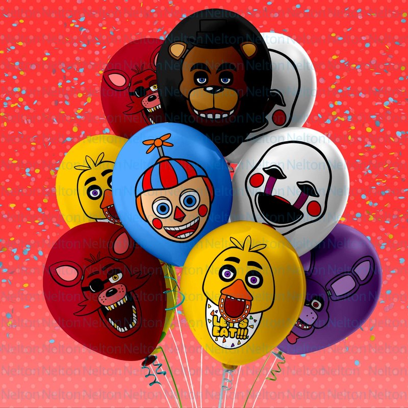 Nelton Birthday Party Supplies For FNAF Includes Banner - Backdrop - Cake Topper - 24 Cupcake Toppers - 24 Balloons - Table Cloth