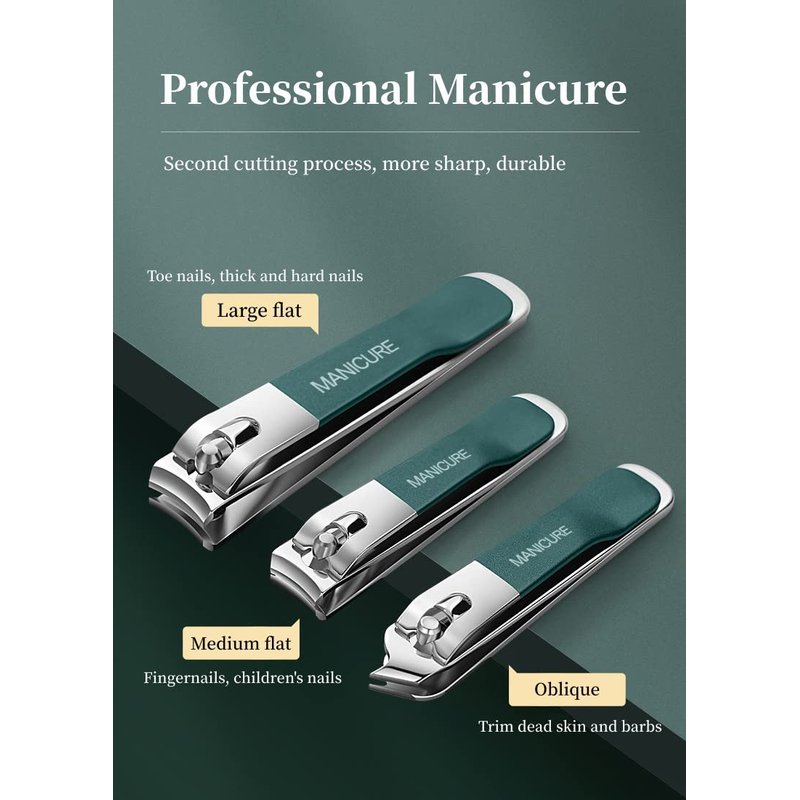 - 【Multifunctional Manicure Set】: The professional manicure set contains 4 tools, multifunctional, including hand care, foot care tools. You will get flat nail clippers and oblique nail clippers, nail file and earpick.