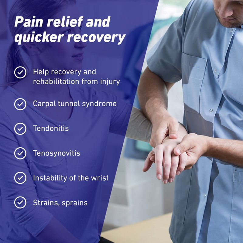This Neo G Easy-Fit Wrist Brace has an innovative design which fits the LEFT or RIGHT wrist, is constructed from specialist breathable fabric and features a removable rigid splint to allow variable stabilization of the wrist and hand. The adjustable strap provides additional compression around the wrist and/or hand if needed, which can help encourage correct alignment of the carpal bones and help reduce inflammation: useful in the management of carpal tunnel syndrome. The support can also be used to help with tendonitis, tenosynovitis and strains caused by repetitive movements at the wrist associated with typing, writing and other occupational or sporting activities at home or away.