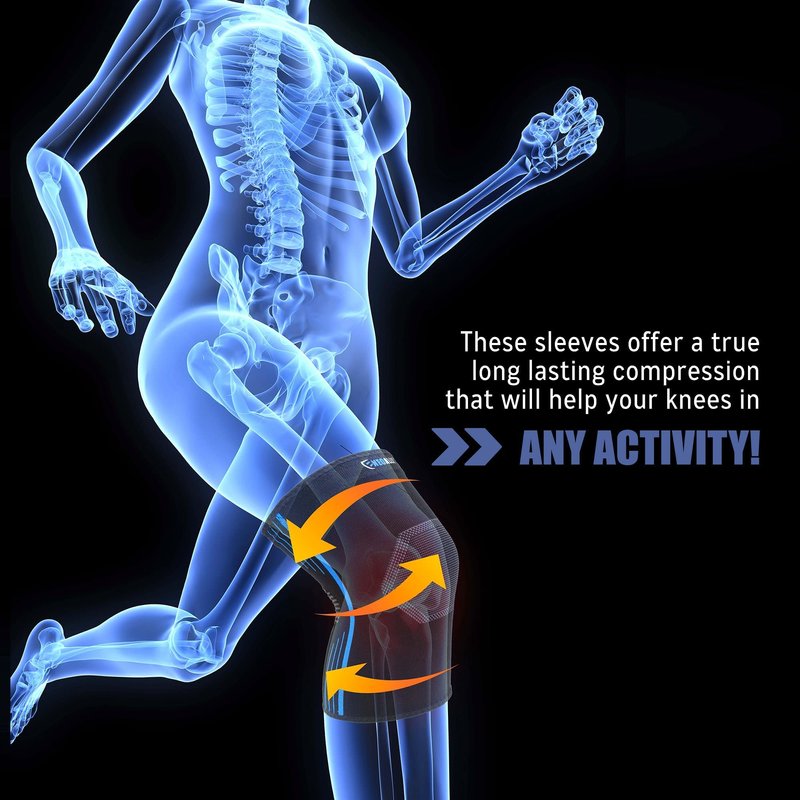 - All-around Compression Knee Sleeves - This athletic knee brace is comfortable to wear and durable for long-term wear. Our knee sleeves provide optimal knee support whenever you play sports, go to the gym, run errands, and more.