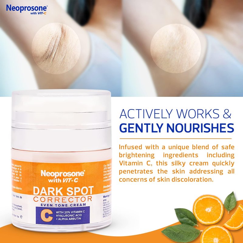 - NO MORE DARK SPOTS - If you are looking to restore a natural shining Skin tone and at the same time reduce skin imperfections such as: Dark patches, Blemishes, Acne Scars or Dark Knuckles Neoprosone Cream is the best answer, Thanks to the infusion with Glycerin and Alpha Arbutin Neoprosone cream safely reduces pigmentation while working on Moisturizing and Hydrating your skin.