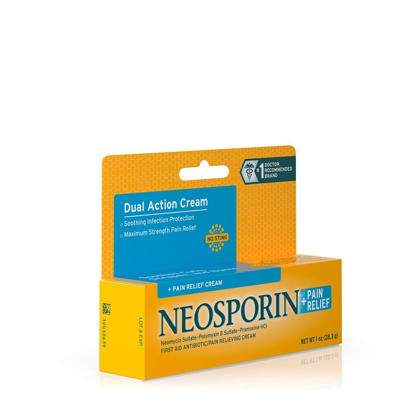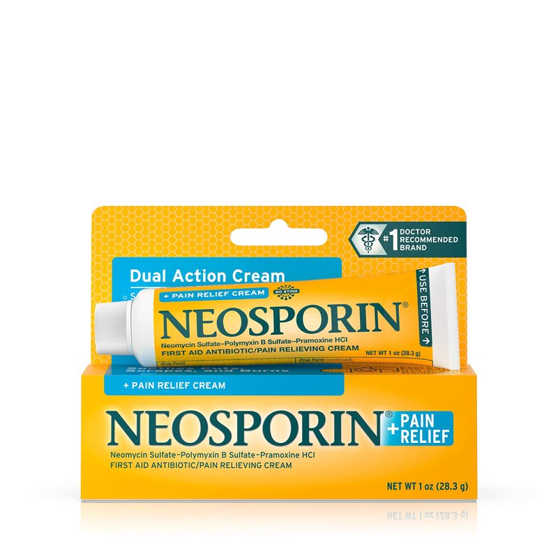 - Neoosporin Cream Pain Relief 1 oz (28.3g) Soothes Painful Cuts, Scrapes & Burns