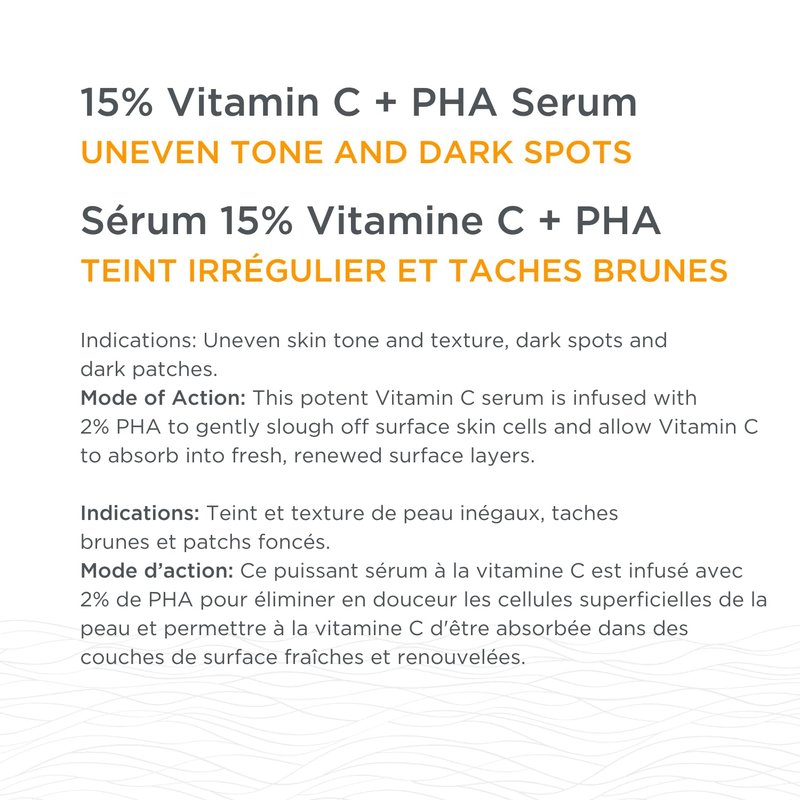 - 15% Vitamin C (L-Ascorbic Acid): Brightens appearance of skin discolorations to reveal a natural, radiant complexion. Helps visibly fade dark spots and dark patches.