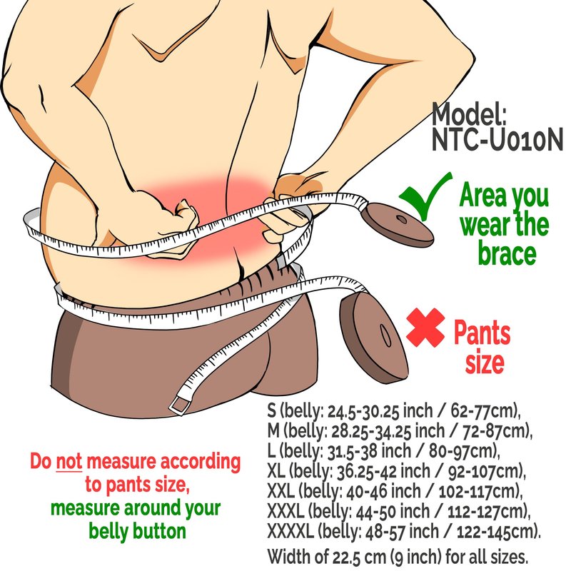 When measuring size please measure around the area where you will put the back support belt, which is usually larger than size of pants/trousers (please refer to product picture showing how to measure)