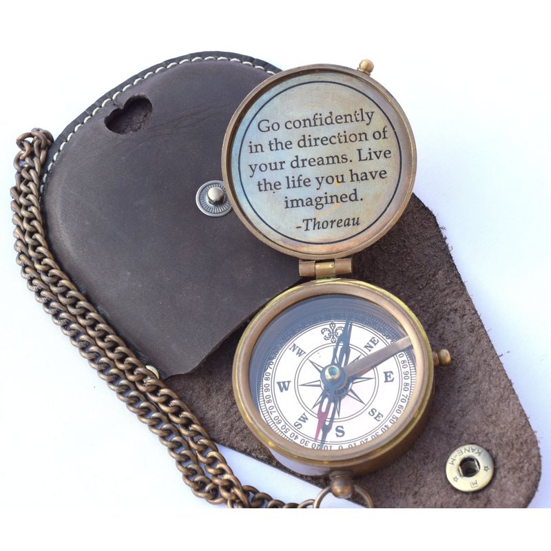 - Solid Brass Compass Antiquated Brass Finish With Thoreau's Quote "GO CONFIDENTLY IN THE DIRECTION OF YOUR DREAMS LIVE THE LIFE YOU HAVE IMAGINED".