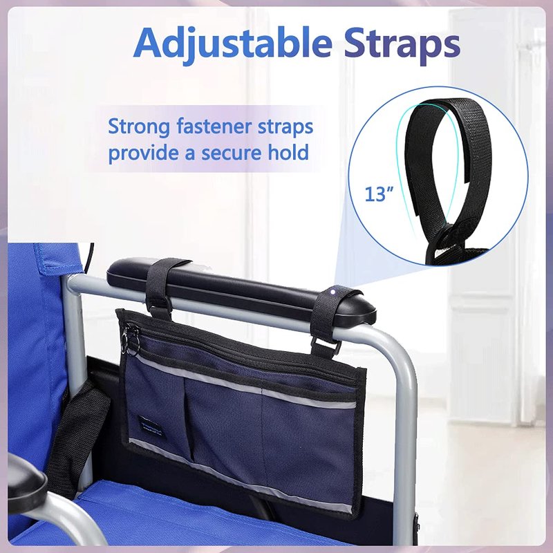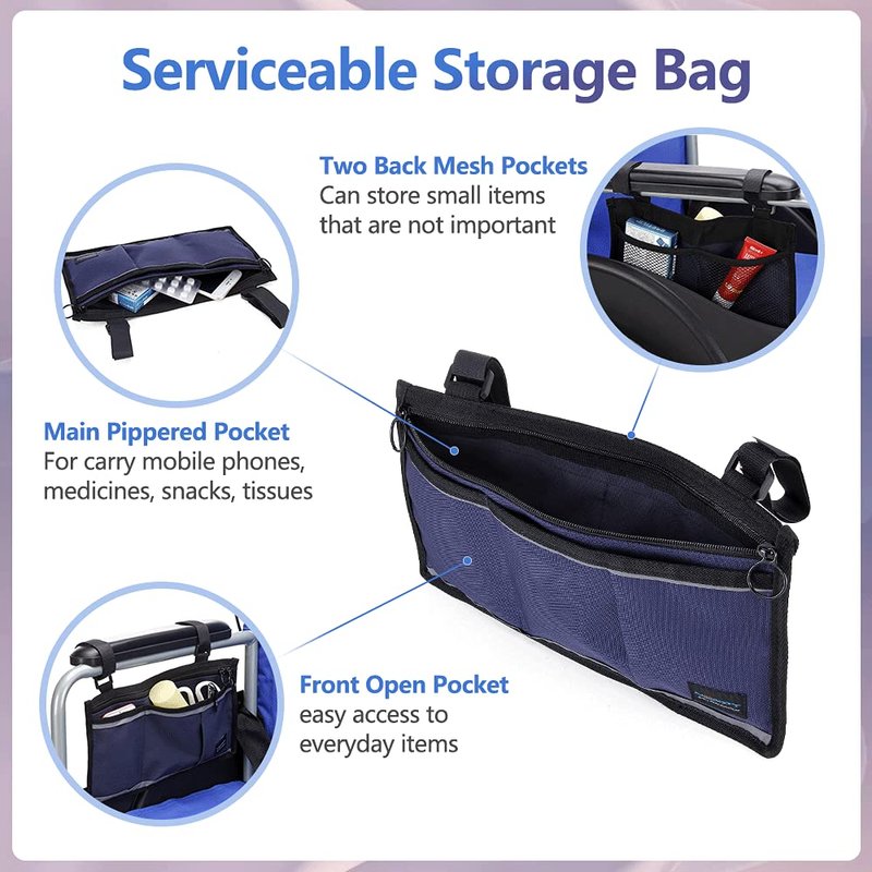 - ♿Wide Applicability: Armrest bag suitable for most standard electric wheelchairs, walkers, rollators, armchairs and transport chairs, mobility scooters, folding bed rails, and more, with wide applicability and great convenience.