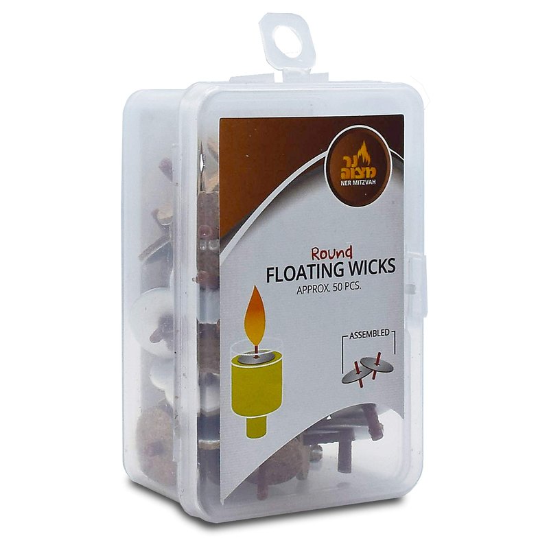Ner Mitzvah Pre-Assembled Round Floating Wicks - 50 Count - Cotton Wicks and Cork Disc Holders for Oil Cups