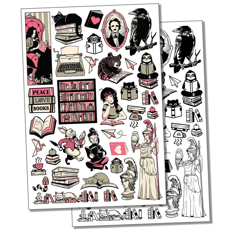 Nerdy Books Reading Literature Temporary Tattoo Water Resistant Fake Body Art Set Collection - Black (One Sheet)