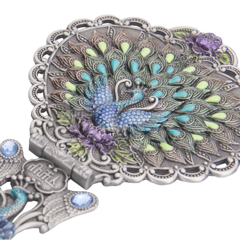 Utility: Peacock pattern, heart-shaped mirror, vintage style design. Attractive color matching. Hand-painted. On machine-made metal bases, craftsmen manually fill in colors. Great choice for makeup mirror which fully displays uniqueness and taste