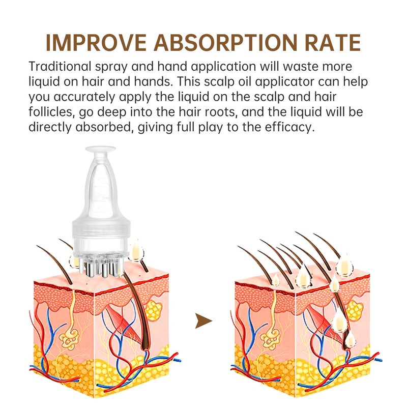 - 【Improve Absorption Rate】 Traditional spray and hand application will waste more liquid on hair and hands. This hair oil applicator can help you accurately apply the liquid on the scalp and hair follicles, go deep into the hair roots, and the liquid will be directly absorbed, giving full play to the efficacy.