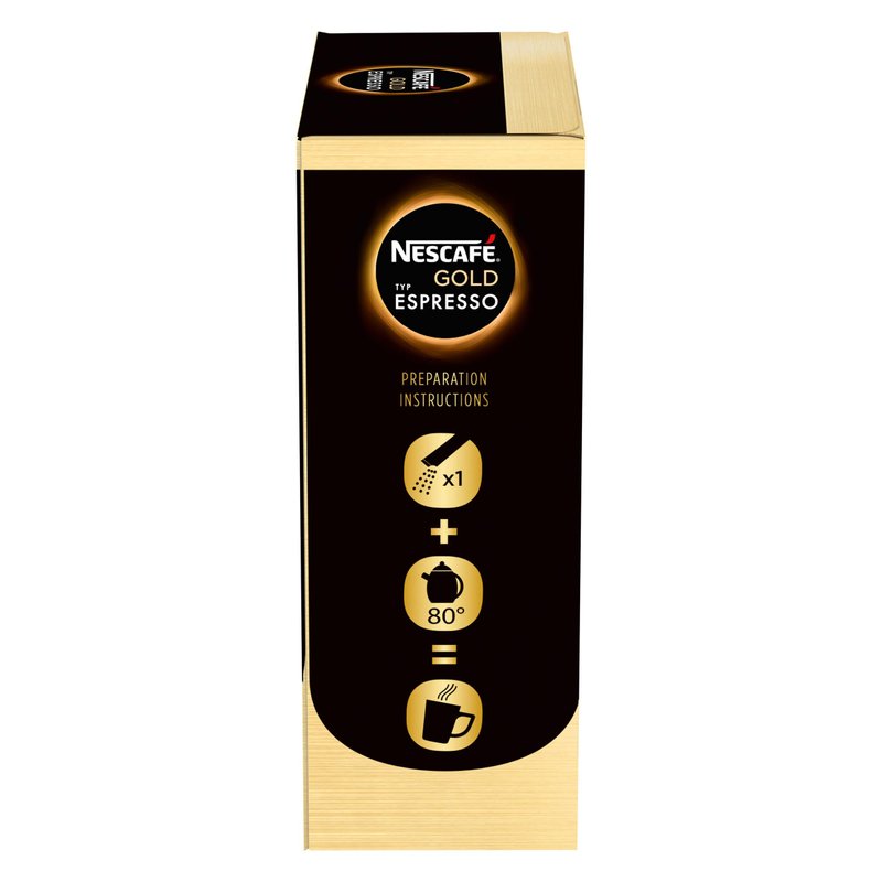 Looking for a moment of pleasure in between? The NESCAFÉ GOLD Espresso made from 100% Arabica beans impresses without an espresso machine, even on the go. Each box contains 25 Sticks, to make 25 coffee cups. Box wight: 45 g ( 25 x 1.8 g).