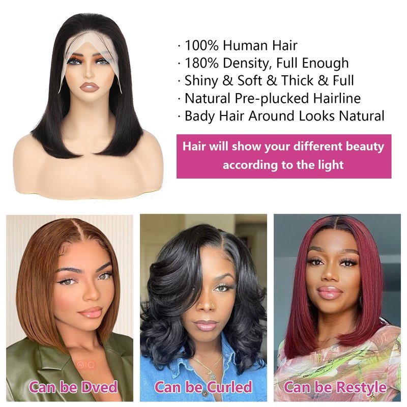 - 13x4 Bob Wigs Human Hair: Made from 100% unprocessed virgin human hair in its natural color. The 180% density provides a thick, full look human hair bob wig.Give u Full and Natural Looking
