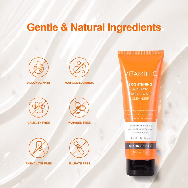 Neutriherbs Vitamin C Face Wash,Daily Facial Cleanser with Aloe & Hyaluronic Acid| Clean,Refresh,Brighten and Balance Complexion| For All Skin Type, 120ml 4 fl. oz