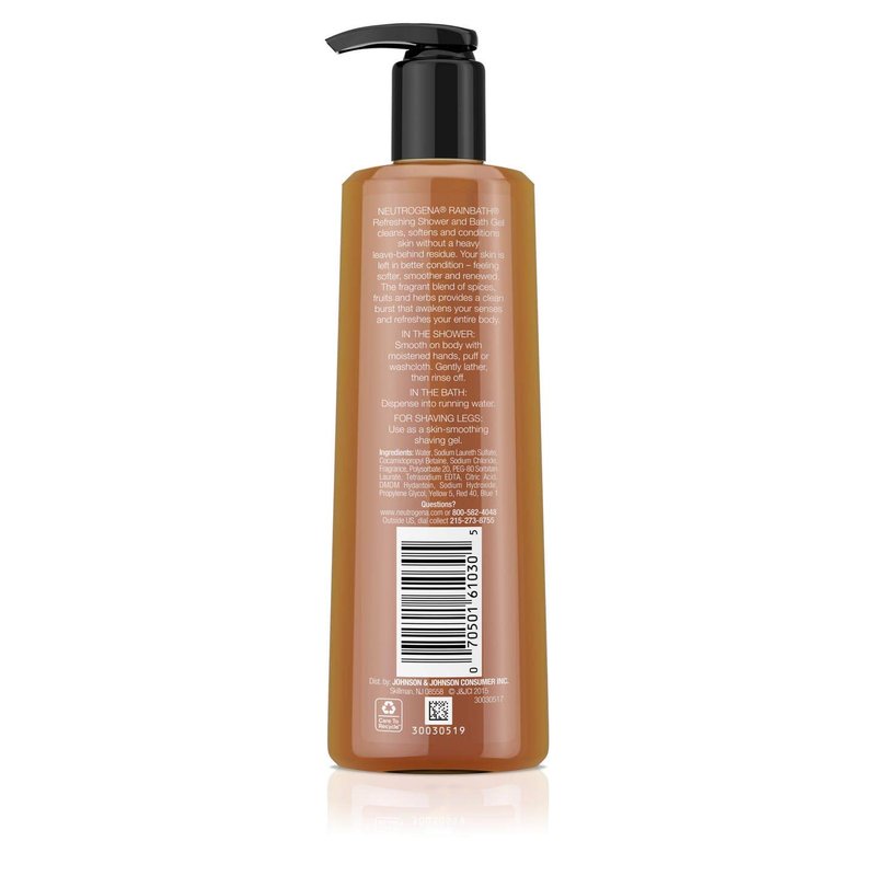 Neutrogena Rainbath Refreshing Shower and Bath Gel: A rich, luxurious lather infused with an invigorating blend of spices, fruits, and herbs. This gentle formula cleanses without stripping, leaving your skin feeling soft, smooth, and irresistibly touchable. No greasy residue, just pure and pampered perfection.