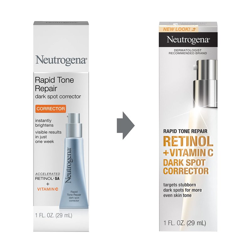 - Packaging May Vary. Neutrogena Rapid Tone Repair Retinol + Vitamin C Dark Spot Corrector Daily Face Serum with dermatologist-proven retinol and Vitamin C to help reveal younger-looking skin