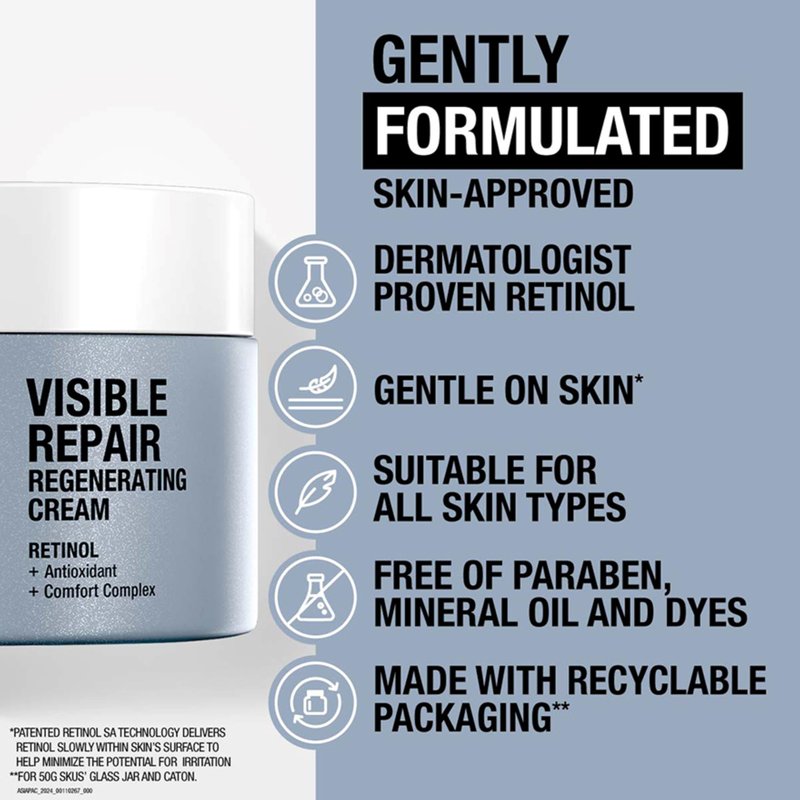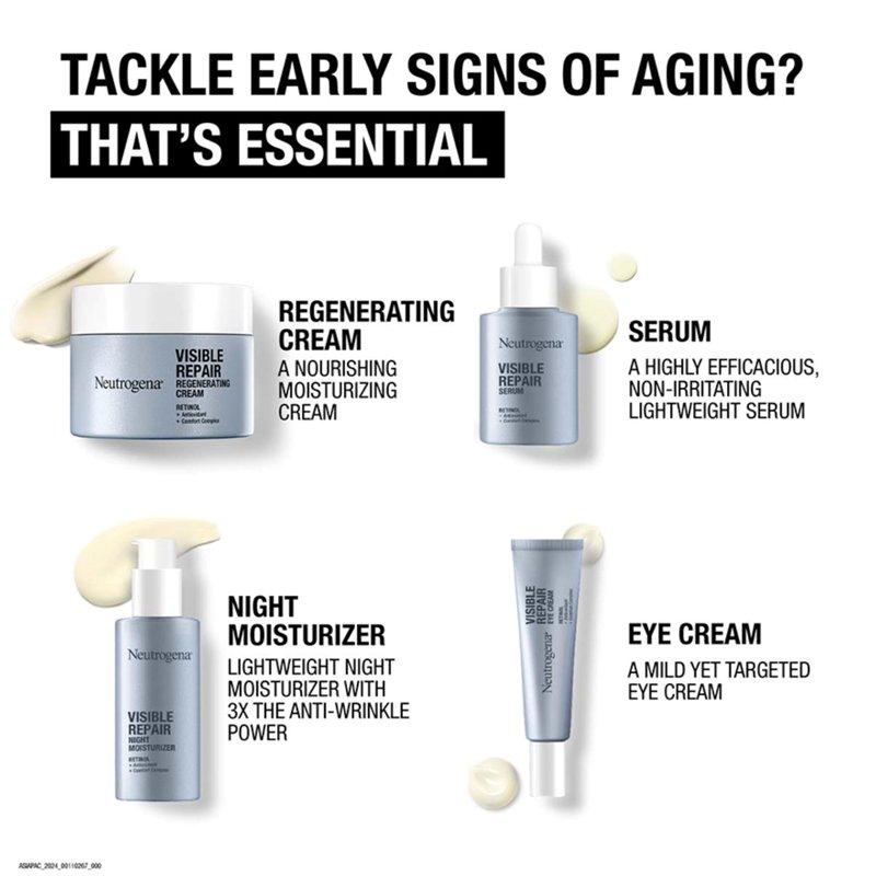 - 1.7-ounce jar of Neutrogena Visible Repair Retinol Regenerating anti-age face & neck cream moisturizer with hyaluronic acid. Your Rapid Wrinkle Repair just got upgraded, now featuring a soothing complex