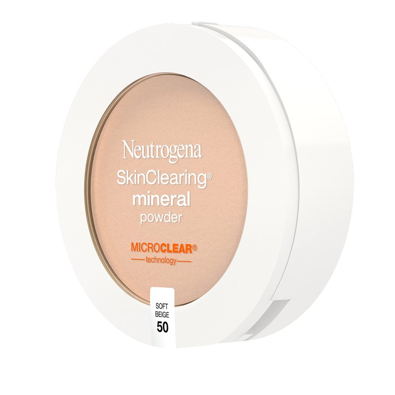 Neutrogena SkinClearing Mineral Acne-Concealing Pressed Powder Compact, Shine-Free & Oil-Absorbing Makeup with Salicylic Acid to Cover, Treat & Prevent Breakouts, Soft Beige 50,.38 oz