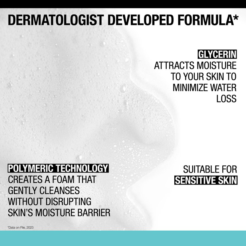 - From a dermatologist recommended skincare brand, this gentle foaming facial cleanser was developed with dermatologists specifically to cleanse sensitive skin. The hydrating cleanser rinses clean, leaving no pore-clogging residue behind