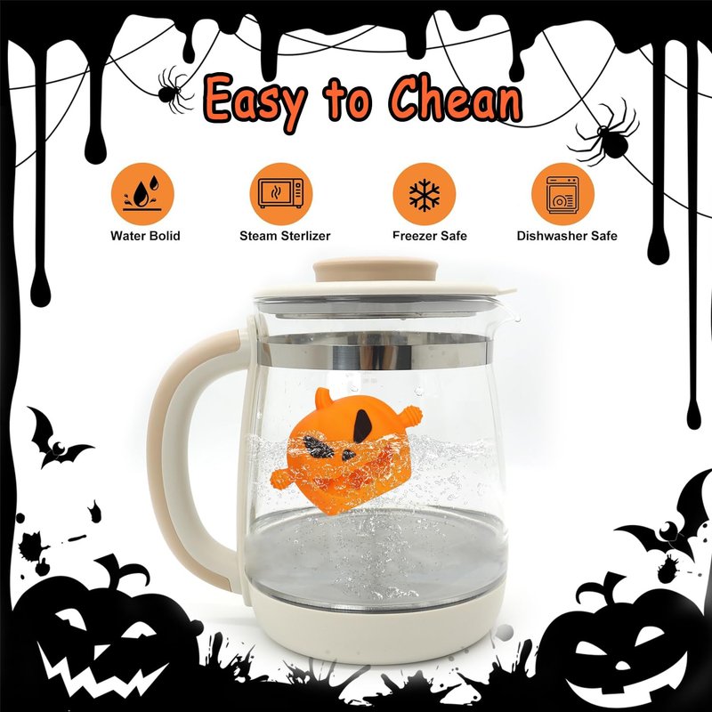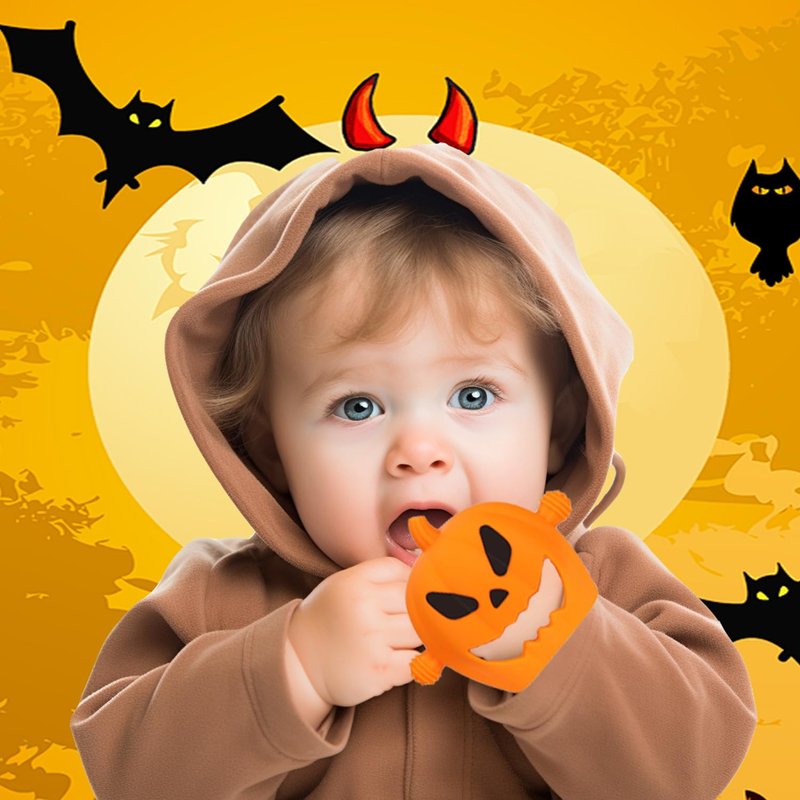 Never Drop Teething Toys for Babies, Baby Mitten Silicone Teether for Soothing Teething Pain Relief, Baby Chew Toys for Sucking Needs (Halloween-Yellow)