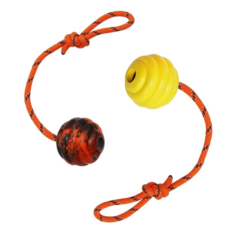 • [SOLID RUBBER BALL AND DURABLE NYLON ROPE]: Heavy duty rubber ball with hollow inside, easy to throw further with durable cotton rope. It is resistant to tear and scratch, and strong non-slip loop makes it easy to throw.