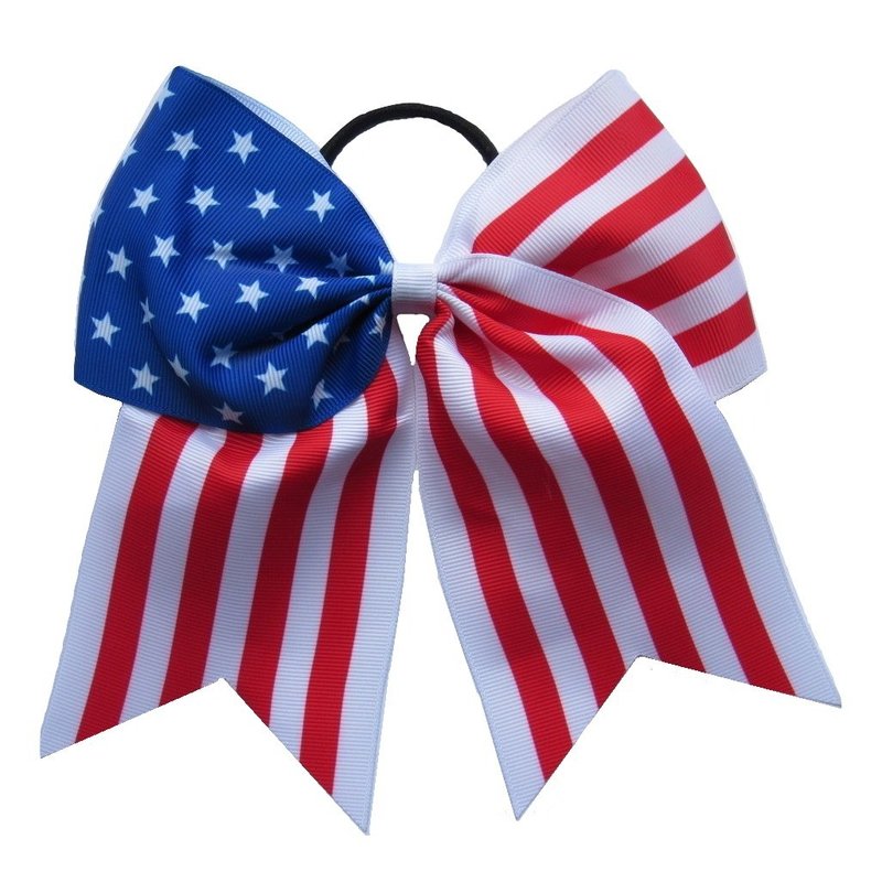 New "AMERICAN FLAG" Cheer Hair Bow Pony Tail 7 Inch Cheerleading Practice Football Games Uniform Hairbow Grosgrain Ribbon 4th of July Patriotic Stars & Stripes