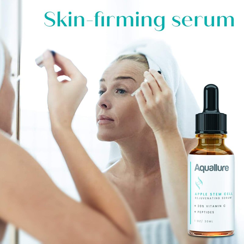 NEW! Aquallure Apple Stem Cell Rejuvenating Serum - Moisturizing Facial Treatment with Vitamin C 20%, Peptides, Hyaluronic Acid - Reduce Appearance of Fine Lines, Improve Skin Texture - 1 fl oz