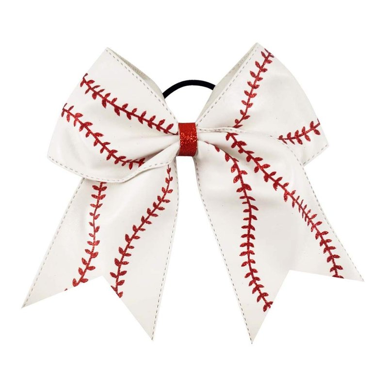 NEW "BASEBALL Glitter Leather" Cheer Bow Pony Tail 7 Inch Girls Hair Cheerleading White Softball Game Team Sports Grosgrain Ribbon