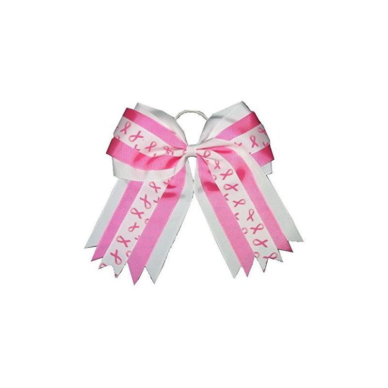 This listing is for a Boutique Grosgrain Ribbon Cheerleading Hairbow! FUNKY & FUN! These are hand-made by me! The Hairbow is made out of white, pink, and Breast Cancer Ribbon Printed premium 3 inch grosgrain ribbon! These Boutique Bows are approx. 7 inches in length and 7 inches wide. Cheer Bows are attached to a stretchy elastic hair tie! Great for Breast Cancer Awareness Events, Cheer Practice, Football Games, Pageants, Cheerleading, Gymnastics, Dance, Vacations, Birthdays, and more! Your daughter will love these bows! Check out my store for other hairbow colors & styles!