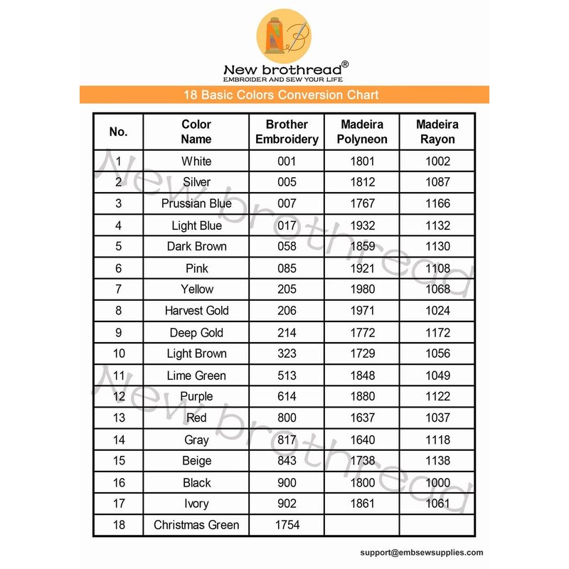 - ★★ Color Conversion is available. Most of these colors can be converted between Brother Colors and Madeira colors, you can get correct colors for your embroidery projects according to our New brothread color chart in pictures No. 3 and No. 4.