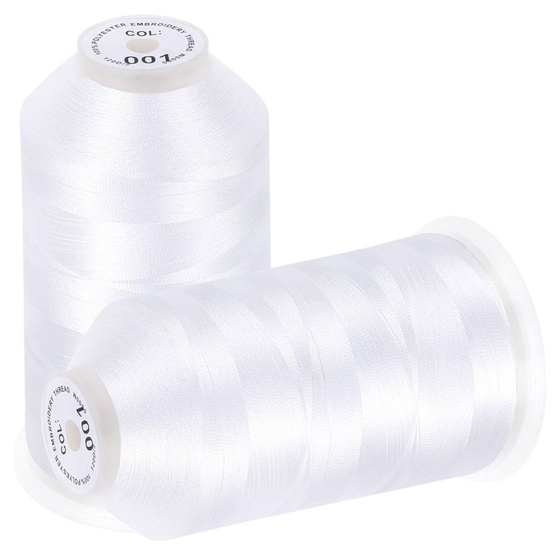 New brothread - 2 Huge Spools 5000M Each Polyester Embroidery Machine Thread 40WT for Commercial and Domestic Machines - White