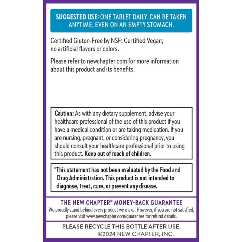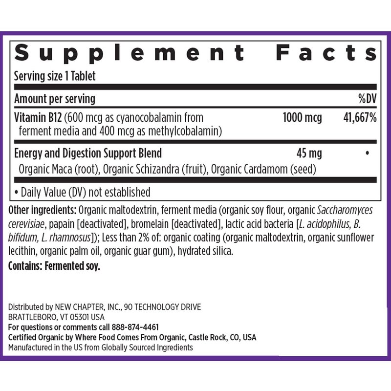 New Chapter Fermented Vitamin B12 1,000 mcg, USDA Organic, ONE Daily for Cellular Energy + Healthy Blood Cells, Certified Vegan, Gluten Free - 60 Count