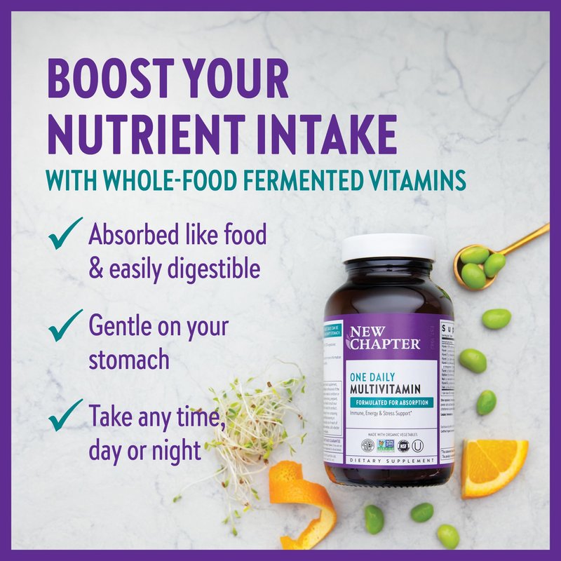 New Chapter One Daily Multivitamin for Immune, Energy & Stress Support, 20+ Nutrients Fermented with Probiotics & Whole Foods, Made with Organic Vegetables - 72 ct