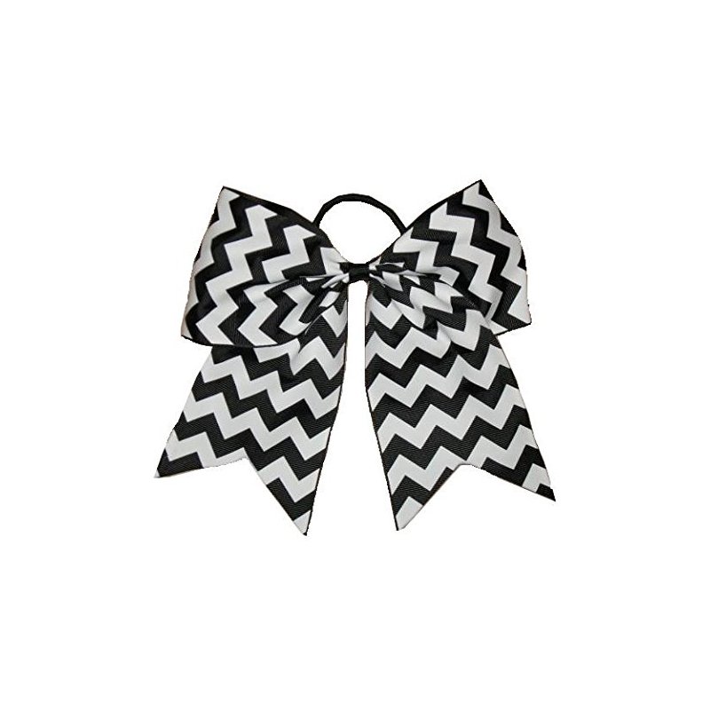NEW "CHEVRON Black" Cheer Bow Pony Tail 7 Inch Girls Hair Bows Cheerleading Practice Football Games School Uniform Dance Hairbow Grosgrain Ribbon