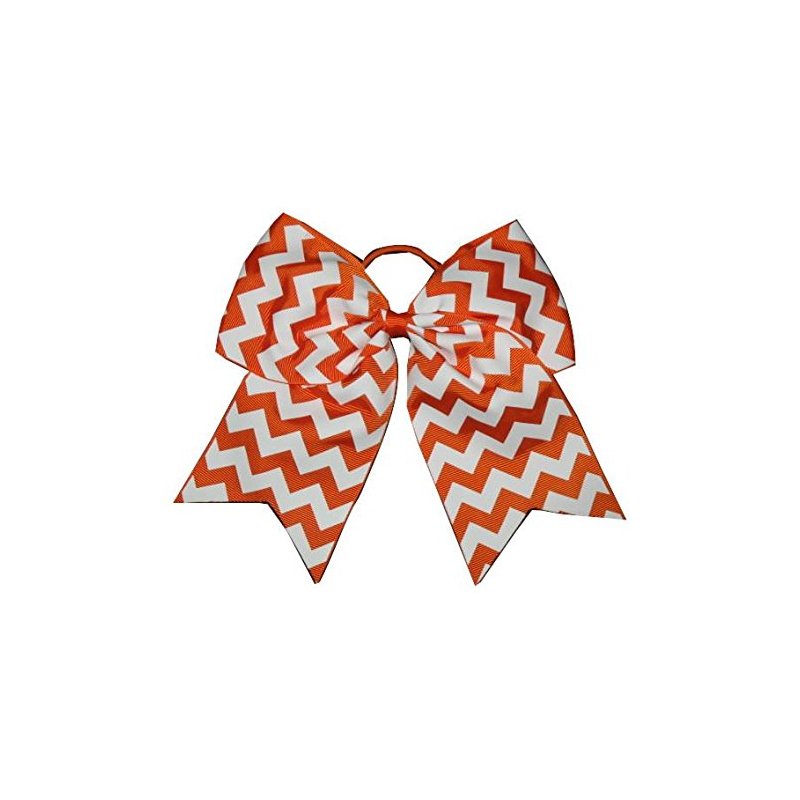 NEW "CHEVRON Orange" Cheer Bow Pony Tail 7 Inch Girls Hair Bows Cheerleading Practice Football Games School Uniform Dance Hairbow Halloween Grosgrain Ribbon