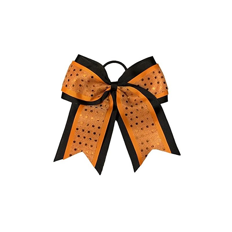 This listing is for a Boutique Grosgrain Ribbon Cheerleading Hairbow! FUNKY & FUN! These are hand-made by me! The Hairbow is made out of black colored premium 3 inch grosgrain ribbon, orange grosgrain ribbon, and a sparkly orange confetti dot tulle fabric! These Boutique Bows are approx. 7 inches in length and 7 inches wide. Cheer Bows are attached to a stretchy elastic hair tie! Great for Cheer Practice, Football Games, Pageants, Cheerleading, Gymnastics, Dance, Vacations, Birthdays, 4th of July, Patriotic Events, Halloween, and more! Your daughter will love these bows! Check out my store for other hairbow colors & styles!