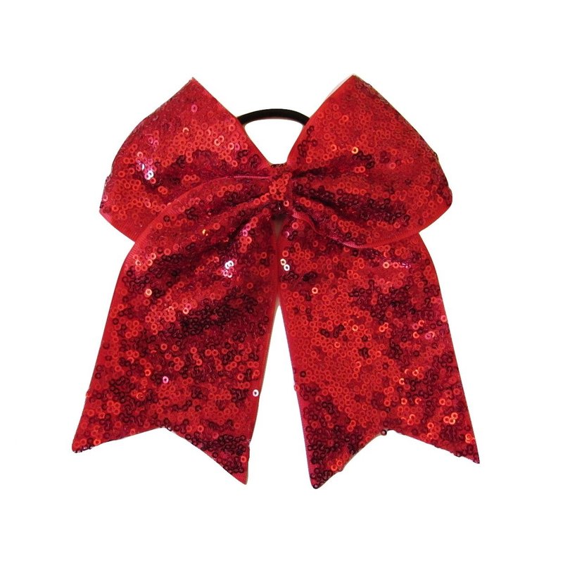New "FANCY SEQUIN Red" Cheer Bow Pony Tail 7 Inch Girls Hair Bows Cheerleading Dance Practice Football Games Competition School Uniform Christmas Valentine's Day Birthday Holiday Grosgrain Ribbon