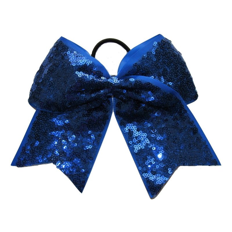 New "FANCY SEQUIN Sapphire Blue" Cheer Bow Pony Tail 7 Inch Girls Hair Cheerleading Dance Practice Football Games Competition School Uniform Birthday Grosgrain Ribbon