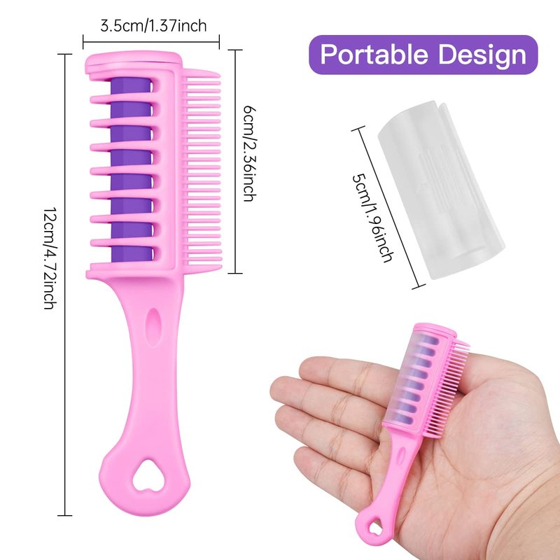 - 【3 Pink+3 Purple】You can use this hair color comb to create so many different looks; 𝗠𝗜𝗡𝗜 𝗦𝗜Z𝗘 𝗗𝗘𝗦𝗜𝗚𝗡 --The length of the hair color comb is about 4.72”(12cm)