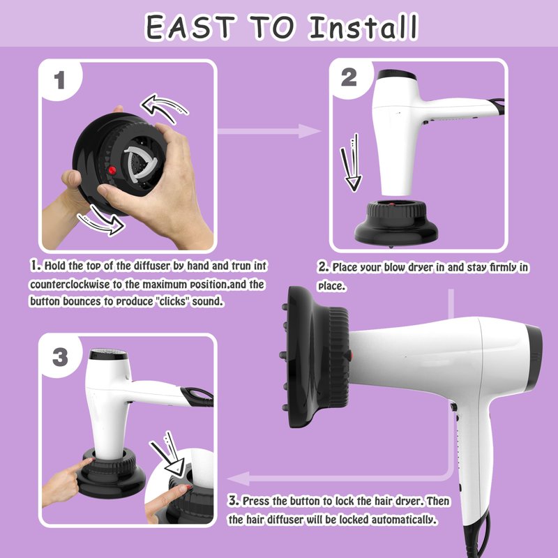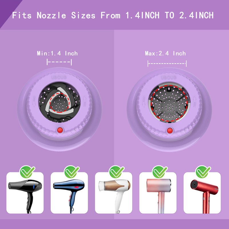 - The Ligolig Diffuser hair dryer is thoughtfully designed with lock button, can be adjusted and fit 99% hair dryers on the market for hair dryer with nozzle diameter of 1.4 inch - 2.4 inch. This hair diffuser compatibilityamplify the natural beauty of your curls, giving them definition and bounce. Whether you have wavy, curly, or coiled hair, our diffuser attachment for hair dryer are the ultimate tool to achieve your desired look.