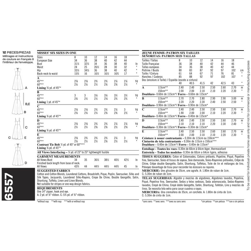 - Misses Dresses in size A (8-10-12-14-16-18), New Look Pattern #6557