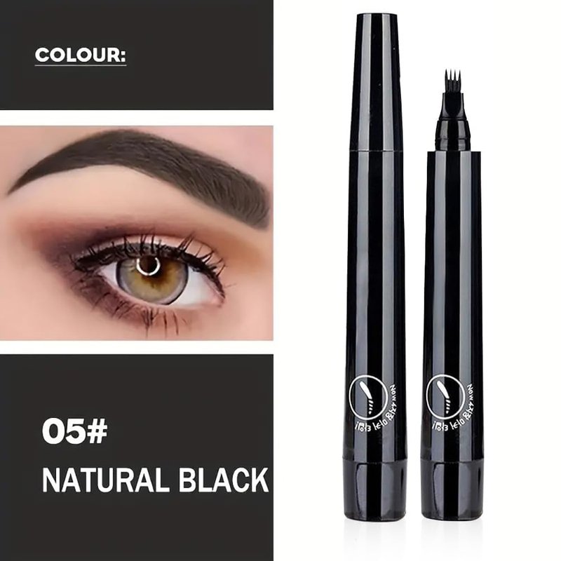 New Magic Eyebrow Pencil, 3D Waterproof Microblading Eyebrow Pencil Contouring Pen, 4 Tipped Precise Brow Pen, Fine Stroke Microblading Eyebrow Pencil Creates Natural Makeup Effect (Natural Black)