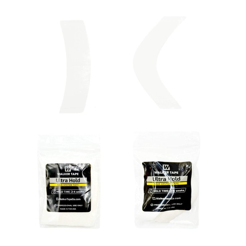 Ultra Hold Tape - A Contour, 36pc/Bag Details Ultra Hold Tape is the strongest and tackiest tape in the industry. It is built with a stretchy carrier, a dull finish, and skin-safe gentleness. It provides a comfortable, maximum wear (4+ weeks) hold for wearers. Keep the product away from heat, humidity, and light. Store in a well-ventilated, cool, dark, dry, room-temperature controlled environment (60-80°F). Seal bags completely. With proper storage, our tapes have a shelf life of up to one year. Directions Prep for Install Shampoo the hair system and bio hair with Bond Breaker Shampoo and let dry. Apply 99% Alcohol to the scalp and the base of the system to prepare for optimal adhesion. Allow to completely evaporate. Apply Max Hold Sport or Scalp Protector to the scalp to enhance the tape’s bond strength and shield against skin irritation. Contours Peel off the white liner that is scored down the middle. Place the adhesive side toward the unit. Avoid touching the adhesive. Place the tape contour where desired on the hair system. Repeat as needed. When ready to apply to the scalp, peel off the remaining printed liner pieces. For easier application, spray Just-Rite Positioning Spray over the adhesive area. The amount sprayed will determine the amount of time available to adjust the unit (the more you spray, the longer you have until the adhesive grabs). Press the hair system firmly onto the scalp, taking care not to move it in the process.