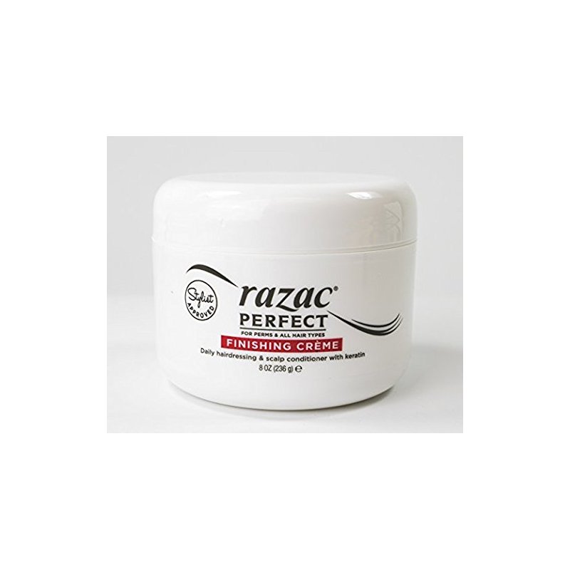 Razac Perfect for Perms Finishing Creme is a special blend of essential oils and proteins combined to give hair a visible sheen, a healthier look and balanced conditioning. It's a daily dressing that's Light so not to weight hair down.