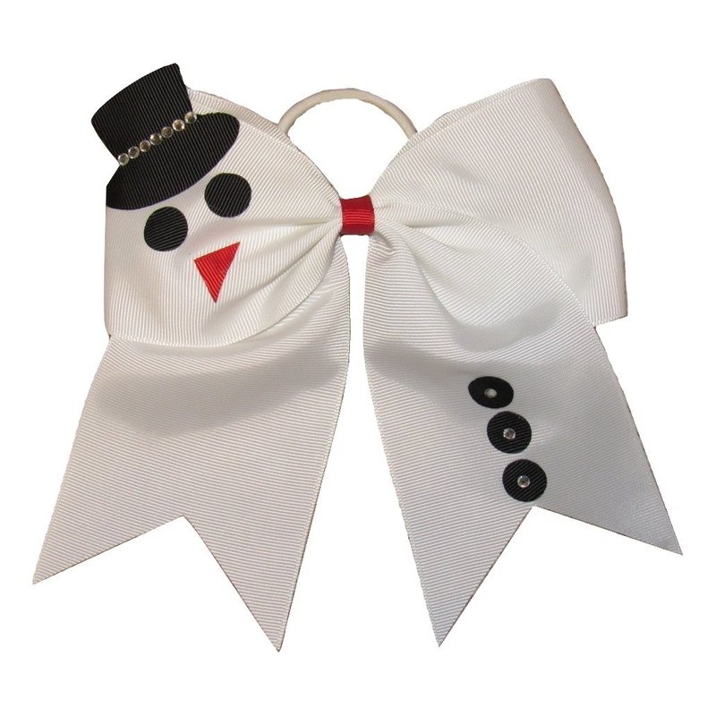 NEW "SNOWMAN BLING" Cheer Bow Pony Tail 7 Inch Girls Christmas Cheerleading Dance Practice Football Games Uniform Holiday Grosgrain Ribbon