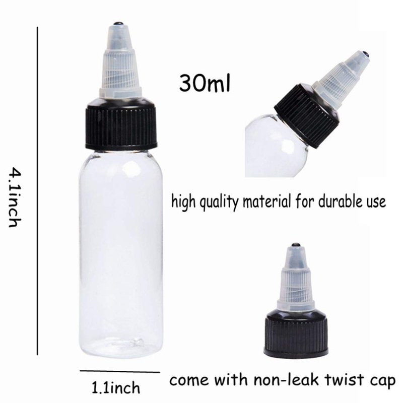 - 5.WIDELY USE: twist cap bottle 1oz suitable for tattoo parlors use and also for home use.